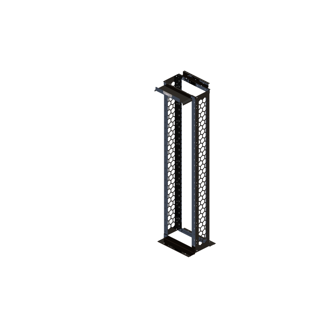 Designed for modern data centers and structured cabling systems, this 8-foot rack provides 51RU of equipment mounting capacity with honeycomb side rails that optimize airflow and cable distribution. The integrated top trough with built-in waterfalls ensures bend radius control for patch cables, while open top and bottom channels allow effortless horizontal cable entry from the ceiling or floor.