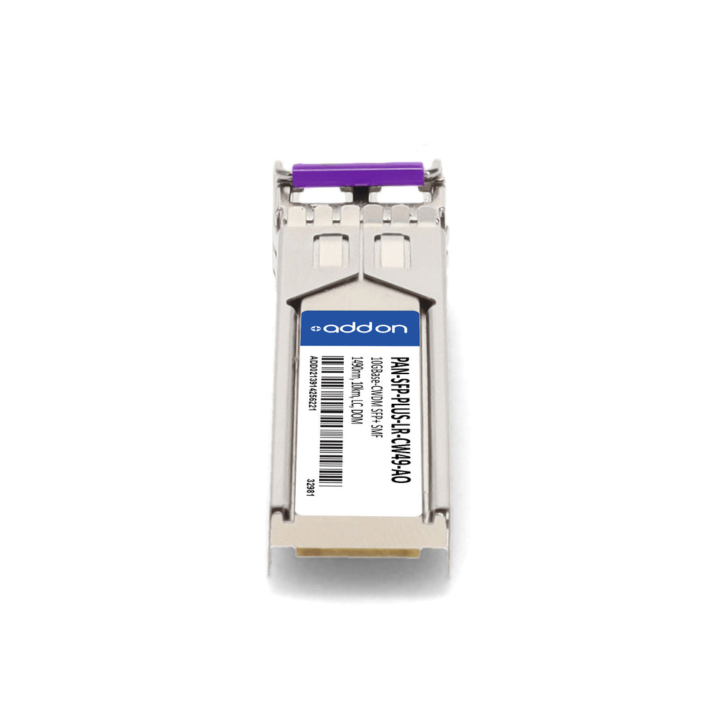 The AddOn Palo Alto Networks® PAN-SFP-PLUS-LR-CW49 compatible SFP+ transceiver delivers reliable 10GBase-CWDM performance up to 10km over single-mode fiber (SMF) using a 1490nm wavelength via an LC connector. Designed to meet or exceed OEM specifications, it guarantees seamless compatibility and high-performance operation in Palo Alto Networks® networking environments. Each unit is programmed, uniquely serialized, and rigorously tested for data traffic and application performance, ensuring identical initialization and functionality as the original.