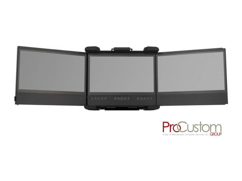 The PCG Rugged Deployable Triple-Screen System (DisplayPort Version) is engineered for military, field-service, and mission-critical environments requiring rapid setup, durability, and multi-display productivity. This ruggedized display solution features three integrated screens that deploy quickly and fold securely for transport, enabling a fully immersive workstation in the field or in mobile command centers.
