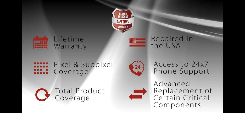 Planar TVF Series video wall displays come with the Planar® EverCare™ Lifetime Limited Warranty, which means everything from the sub-pixels to the Controller is covered for as long as the video wall is used in a fixed location.