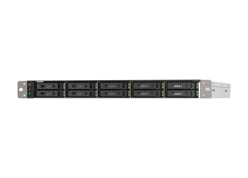 The QNAP TS-H1090FU-7232P-64G is a high-density, ultra-low latency all-flash SAN/NAS storage solution engineered for performance-driven environments. Equipped with ten U.2 NVMe PCIe Gen 4 x4 SSD bays in a space-efficient 1U chassis, it delivers exceptional random read/write IOPS for virtualization, data center, multimedia, and mission-critical workloads.
