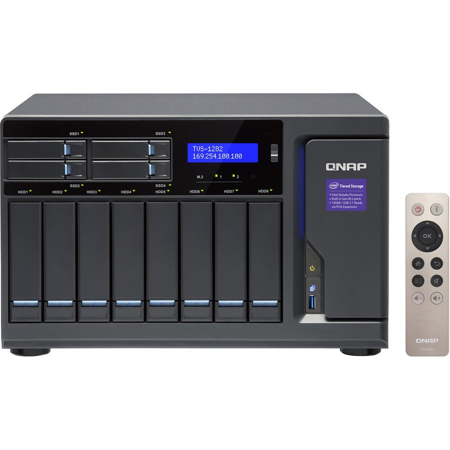 The QNAP TVS-1282-i7-32G-450W is a high-performance 12-bay tower NAS designed for professional environments that demand speed, scalability, and reliability. Powered by a 6th Generation Intel® Core™ i7-6700 quad-core processor and 32GB DDR4 RAM, it supports tiered storage, application-based partitioning, and network traffic distribution for optimized workflows. With support for M.2 SATA SSDs, SSD caching, and multiple RAID levels, it delivers exceptional performance for virtualization, 4K media editing, and enterprise backup. Triple HDMI outputs, PCIe expandability, and QTS 4.2 OS make it a powerful all-in-one storage and application server for SMBs and creative professionals.
