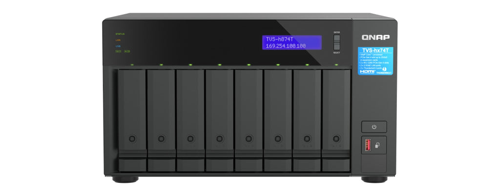 The QNAP TVS-h874T-i7-32G is a creator-focused, ultra-fast NAS designed for demanding 4K/8K video editing, collaborative workflows, and high-speed file sharing. Powered by a 12-core Gen12 Intel® Core™ processor with a built-in GPU and 32GB DDR4 RAM (expandable to 64GB), this NAS leverages the ZFS-based QuTS hero OS for advanced data integrity, snapshots, and inline data deduplication. With dual Thunderbolt 4 Type-C ports, two 2.5GbE LAN ports, M.2 NVMe SSD caching slots, and PCIe Gen 4 expandability, it’s built to handle the heaviest creative workloads with speed, reliability, and efficiency.