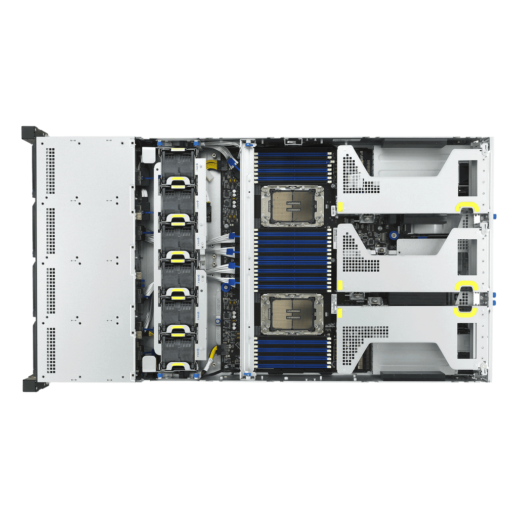 With 10 PCIe 5.0 slots, dual OCP 3.0, and redundant 2700W Titanium-rated PSUs, this system offers superior I/O flexibility and high energy efficiency. The server also integrates advanced management capabilities through ASUS ASMB12-iKVM and ASUS Control Center (Classic) for remote administration.