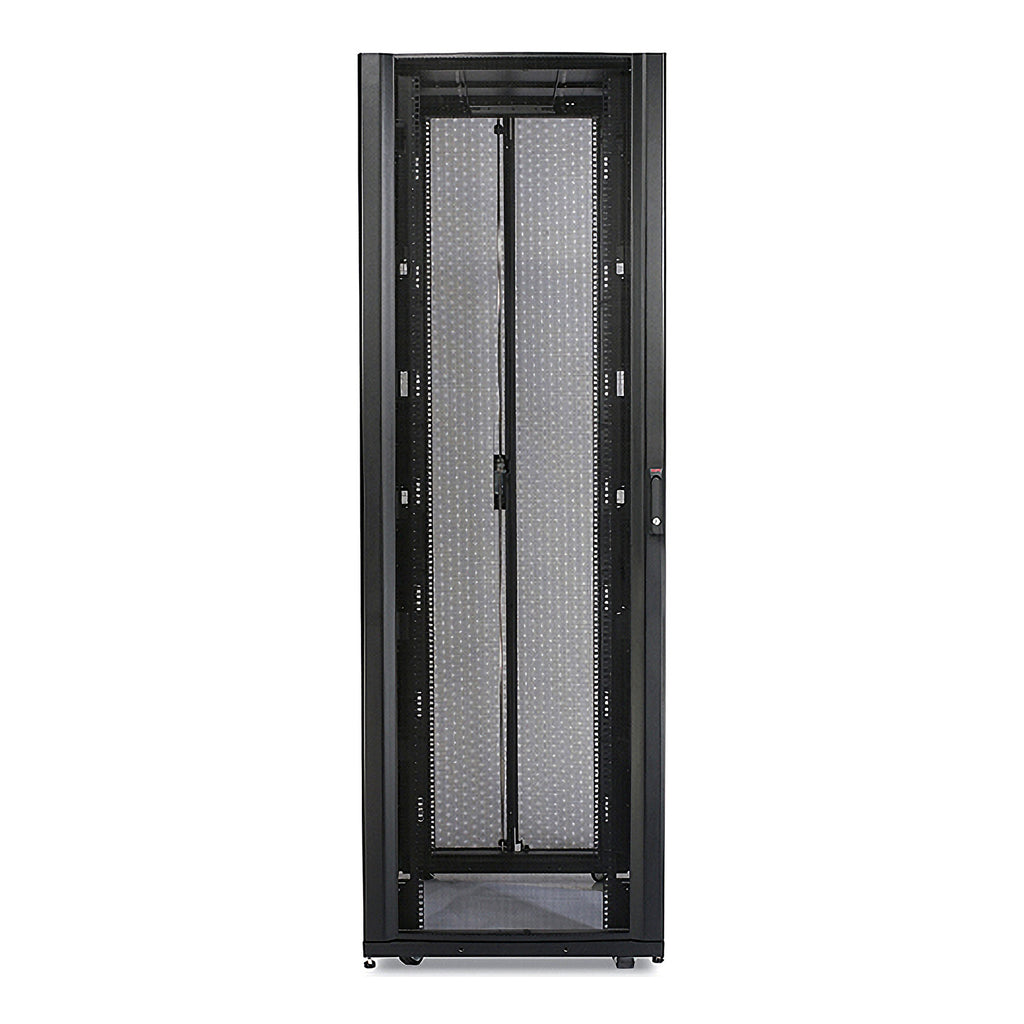 The APC NetShelter SX AR3155SP is a high-performance 45U server rack enclosure designed for secure IT equipment integration, transport, and deployment. Engineered with shock packaging for blade servers and converged systems, it supports up to 2000 lbs (907 kg) of equipment. This cabinet is Cisco® UCS certified for pre-racking and shipping, making it ideal for data centers, server rooms, and enterprise wiring closets. Comes with integrated casters, baying hardware, and side panels for rapid deployment.