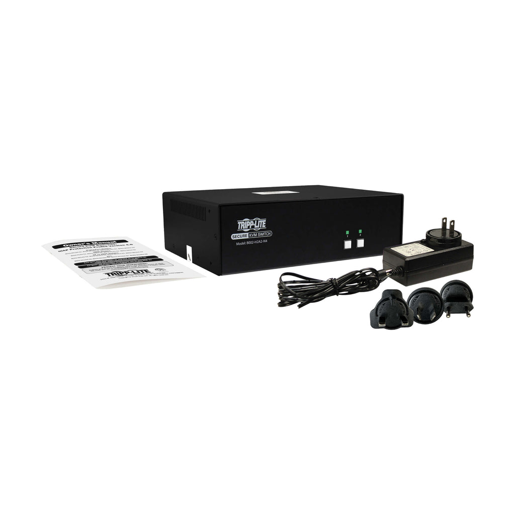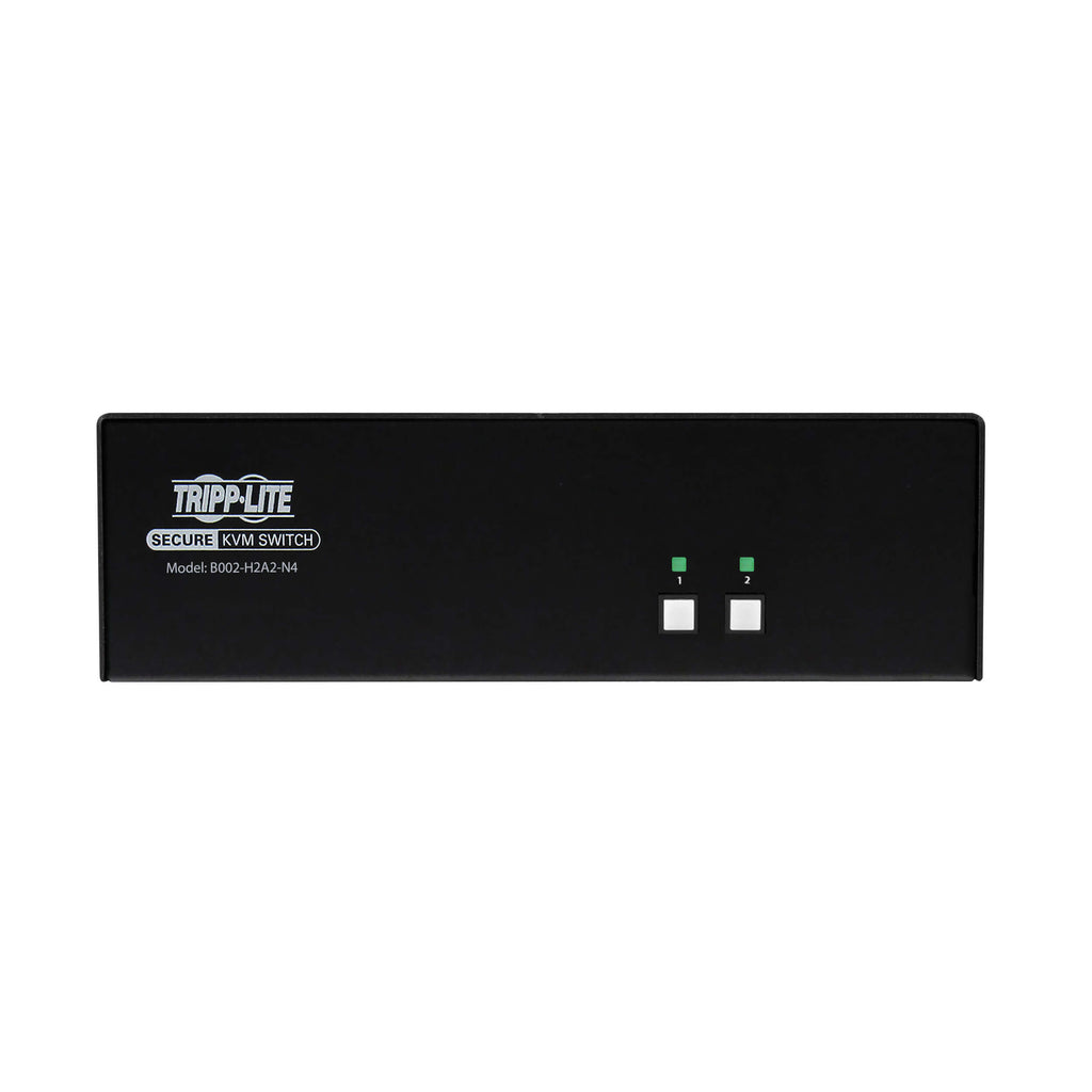 The B002-H2A2-N4 Secure KVM Switch is a NIAP PP4.0-certified solution designed for environments that require the highest level of data protection. Ideal for government, military, financial, healthcare, and enterprise applications, this 2-port dual-head HDMI KVM enables secure access to two isolated computers from a single keyboard, mouse, and dual-monitor console.