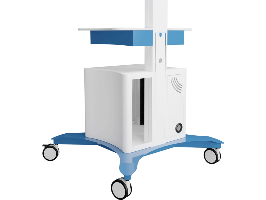 The AVTEQ TMP-300 Telemedicine Cart delivers a compact, highly mobile solution designed for hospitals, clinics, and remote-care environments. Built with 100% solid steel, this cart provides a stable and reliable platform for telehealth technology while maintaining a small footprint that moves smoothly across carpeted or hard-surface floors.