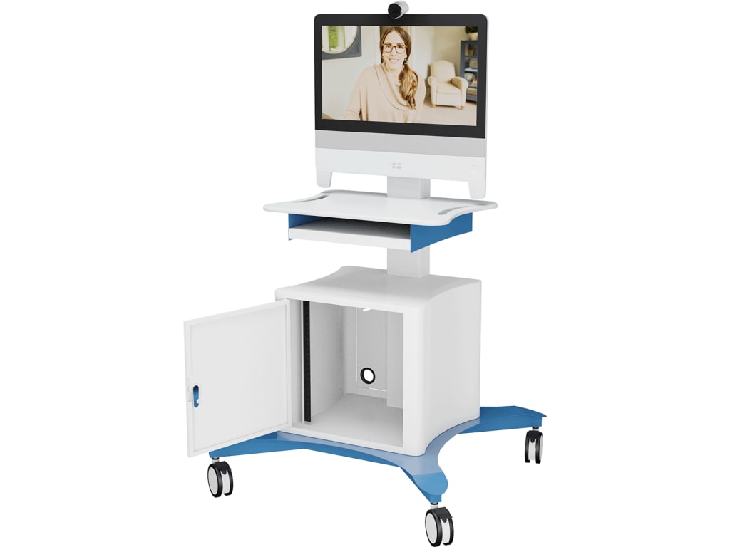Engineered for demanding healthcare workflows, the TMP-300 is easy to clean with common hospital-grade solutions, making it ideal for shared spaces. Designed to accommodate a variety of devices—including compatibility with Cisco Desk Pro setups—this cart provides a flexible and fully integrated telehealth workstation for modern care environments.