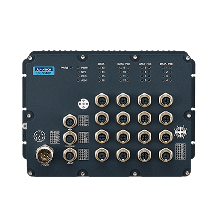 The Advantech EKI-9516-P0IDH10E is a rugged, railway-certified managed Ethernet switch engineered for harsh industrial and rolling stock environments. Built with an IP67 waterproof aluminum enclosure and secure M12 connectors, it delivers reliable networking even under heavy vibration, shock, and extreme temperatures.