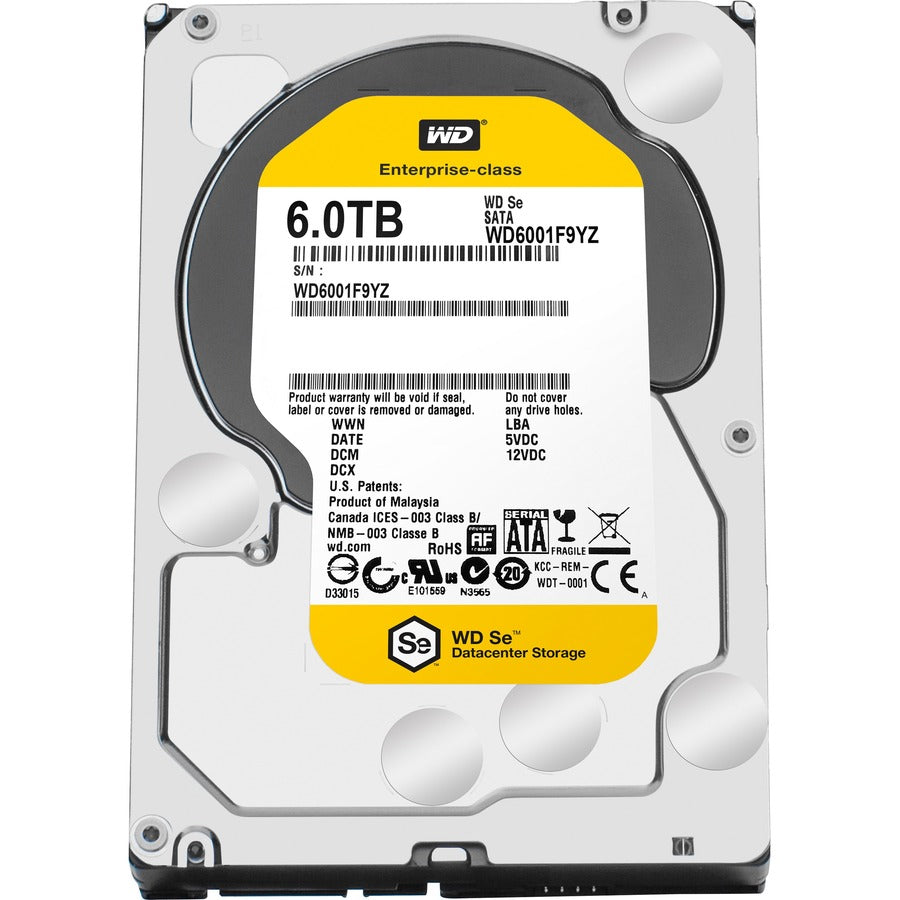Boost your server or storage system with the WD-IMSourcing Se 600 WD6001F9YZ 6TB Hard Drive. Designed for mid-intensity data center applications, this 3.5" internal HDD combines enterprise-class durability with the performance of 7200RPM and a 128MB buffer. With SATA/600 interface and RoHS/WEEE compliance, it ensures consistent 24x7x365 operation while meeting modern environmental standards. An ideal choice for scale-out infrastructures that demand dependable capacity and efficiency.