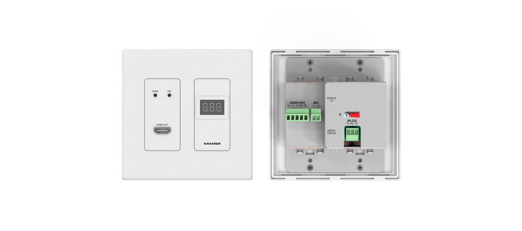 The Kramer WP-DEC7/US-D(W) is a high-performance, highly scalable AVoIP wall-plate decoder designed for modern 4K video-over-IP installations. Engineered for 1G Ethernet networks, it receives visually lossless 4K video streams with ultra-low latency, making it ideal for corporate meeting rooms, digital signage networks, control centers, and education environments.